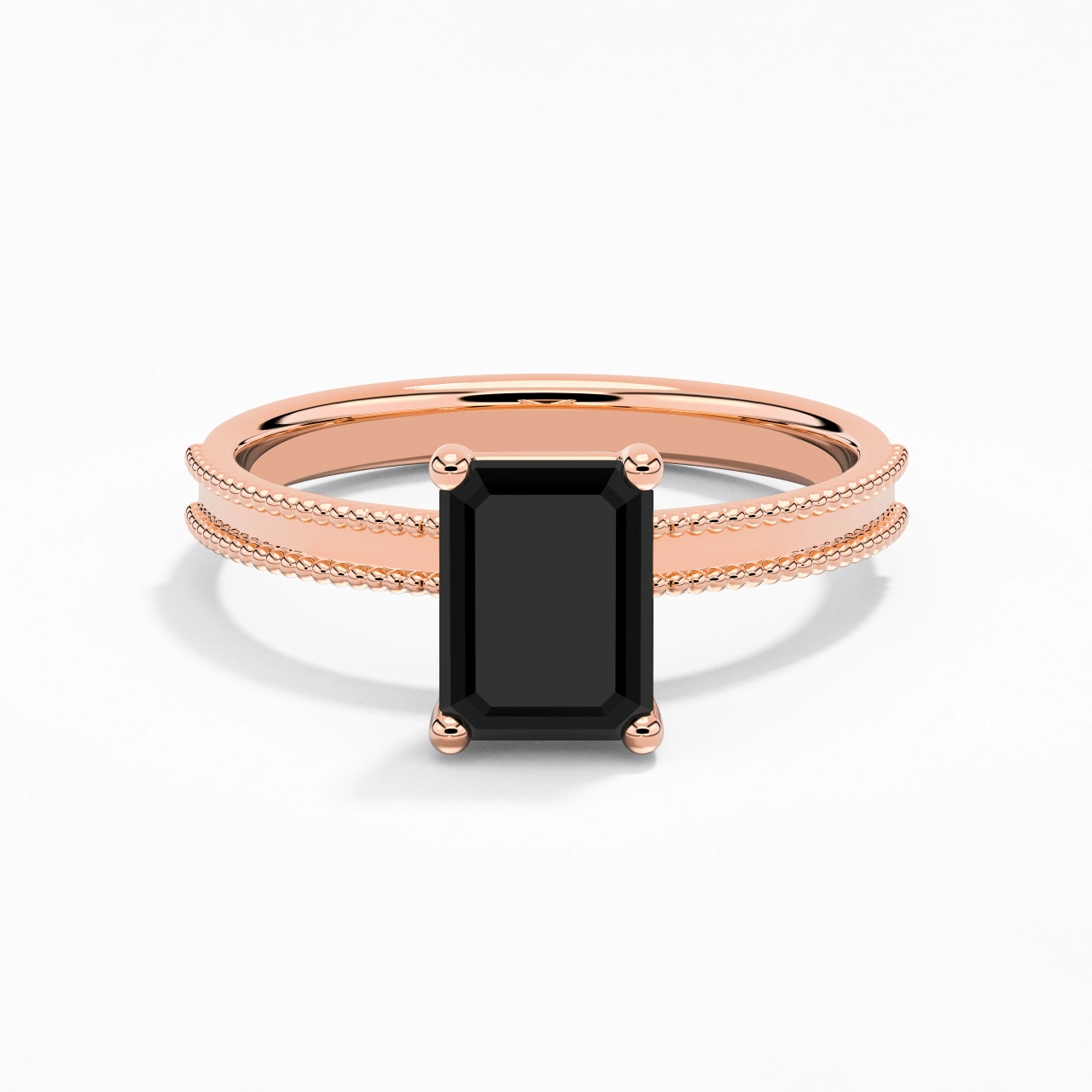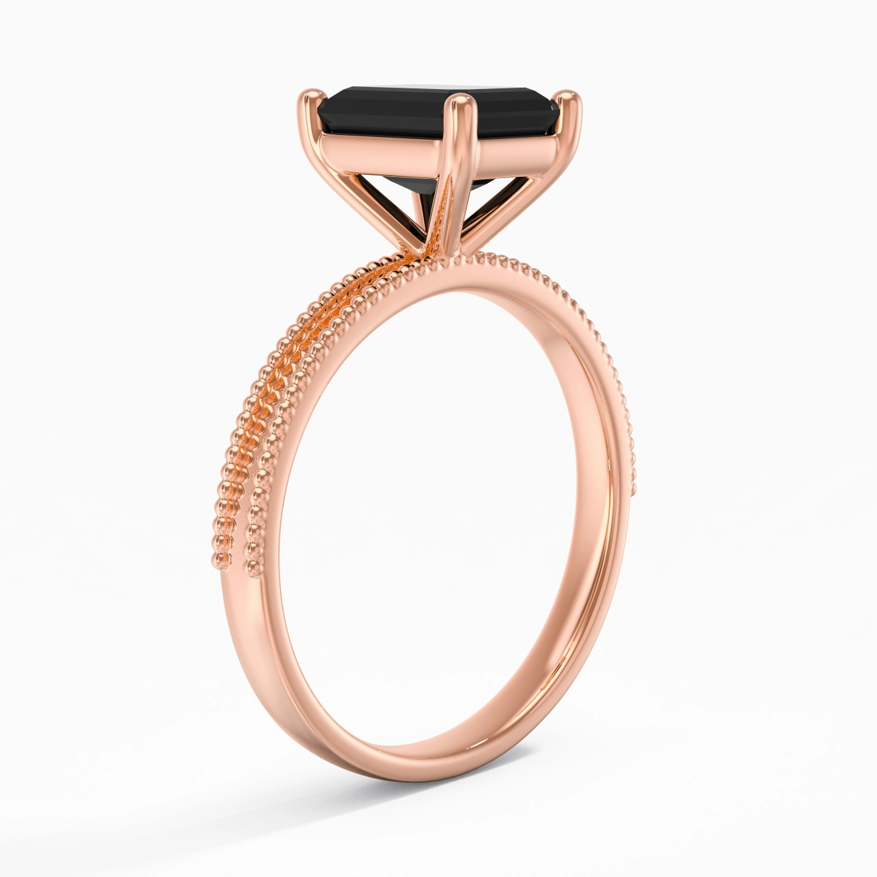2.00ct Emerald Cubic Zirconia Engagement Ring 925 Sterling Silver Solitaire Beaded Wide Straight Shank